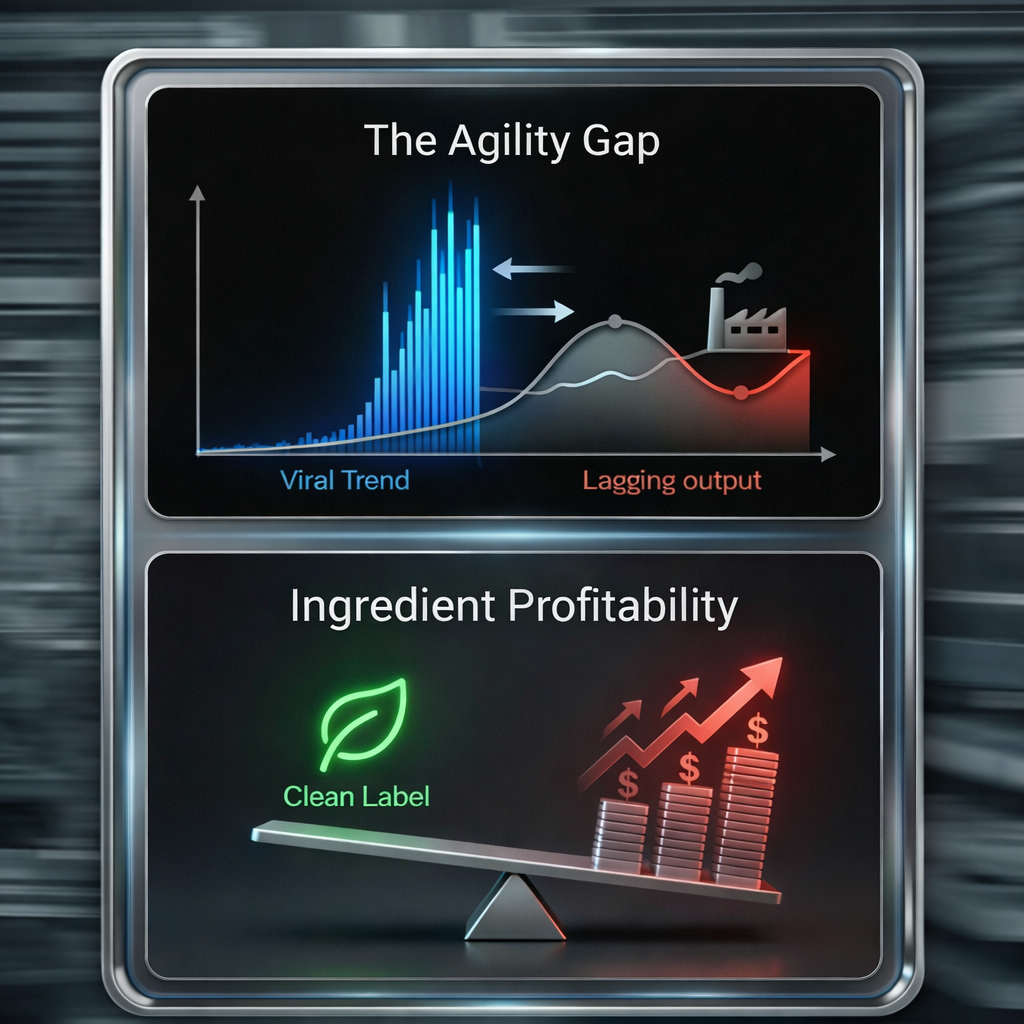 The Agility Gap: Viral social media trends can spike demand for specific ingredients or textures (like “Textural Maximalism” or “Matcha Rituals”) overnight. We implement PeakFlow OS™ to reduce changeover times and modularize production, allowing you to capture high-margin trends before they fade.