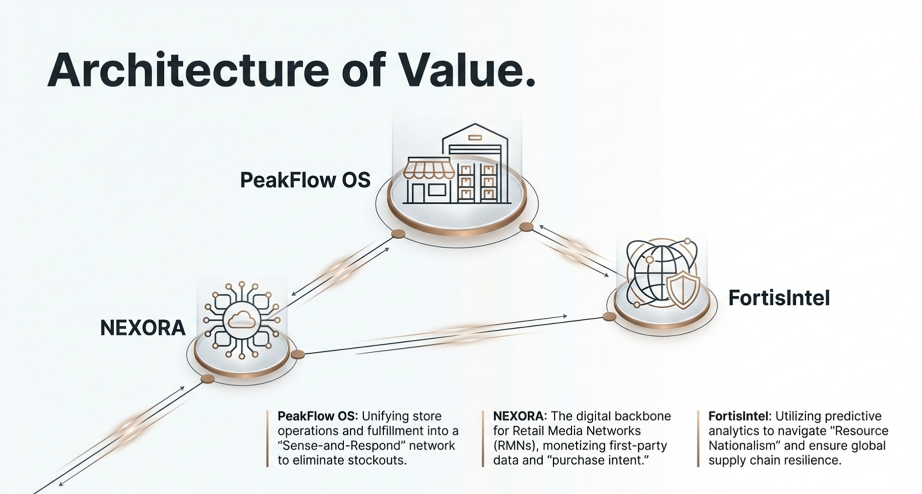 PeakFlow OS™: Unifying store operations and warehouse fulfillment into a single “Sense-and-Respond” network to eliminate stockouts and overstocks.